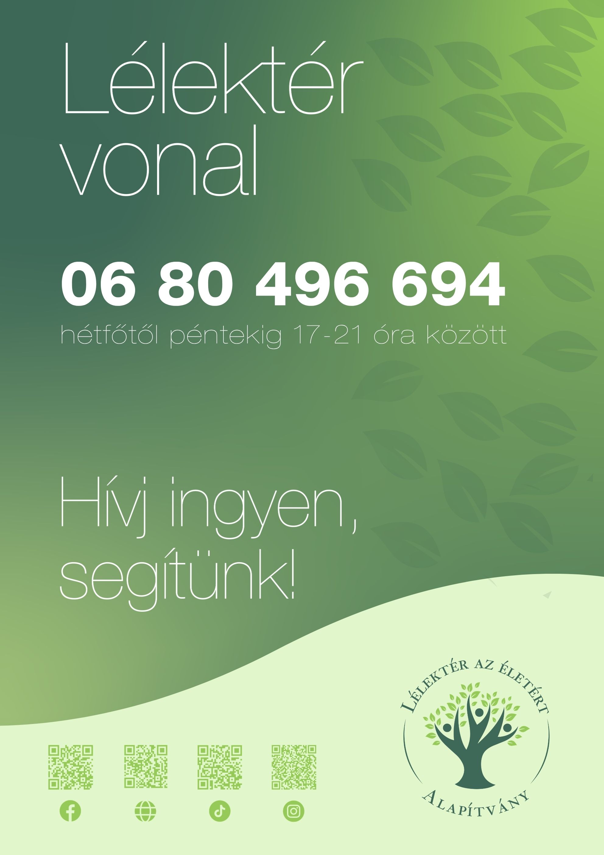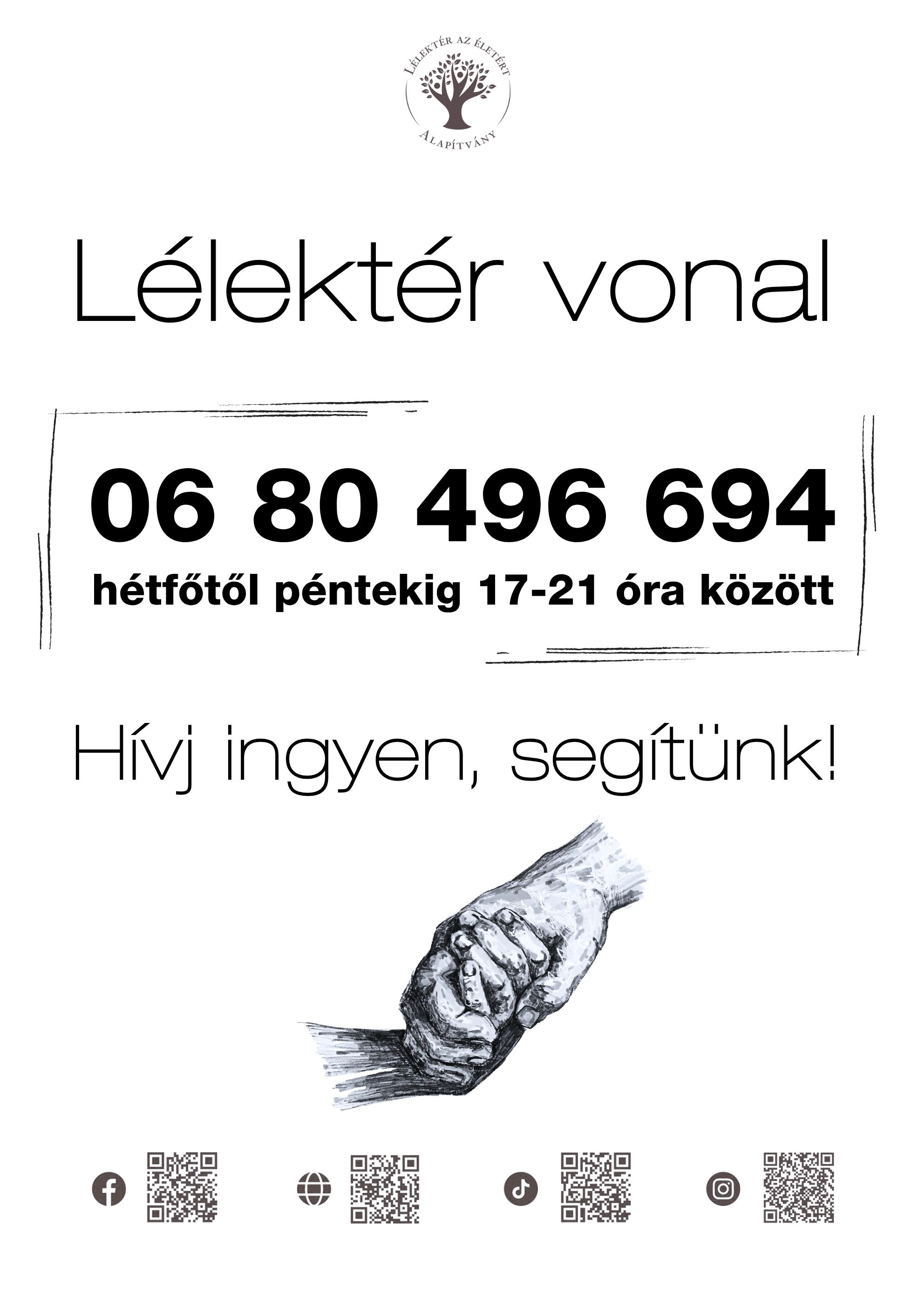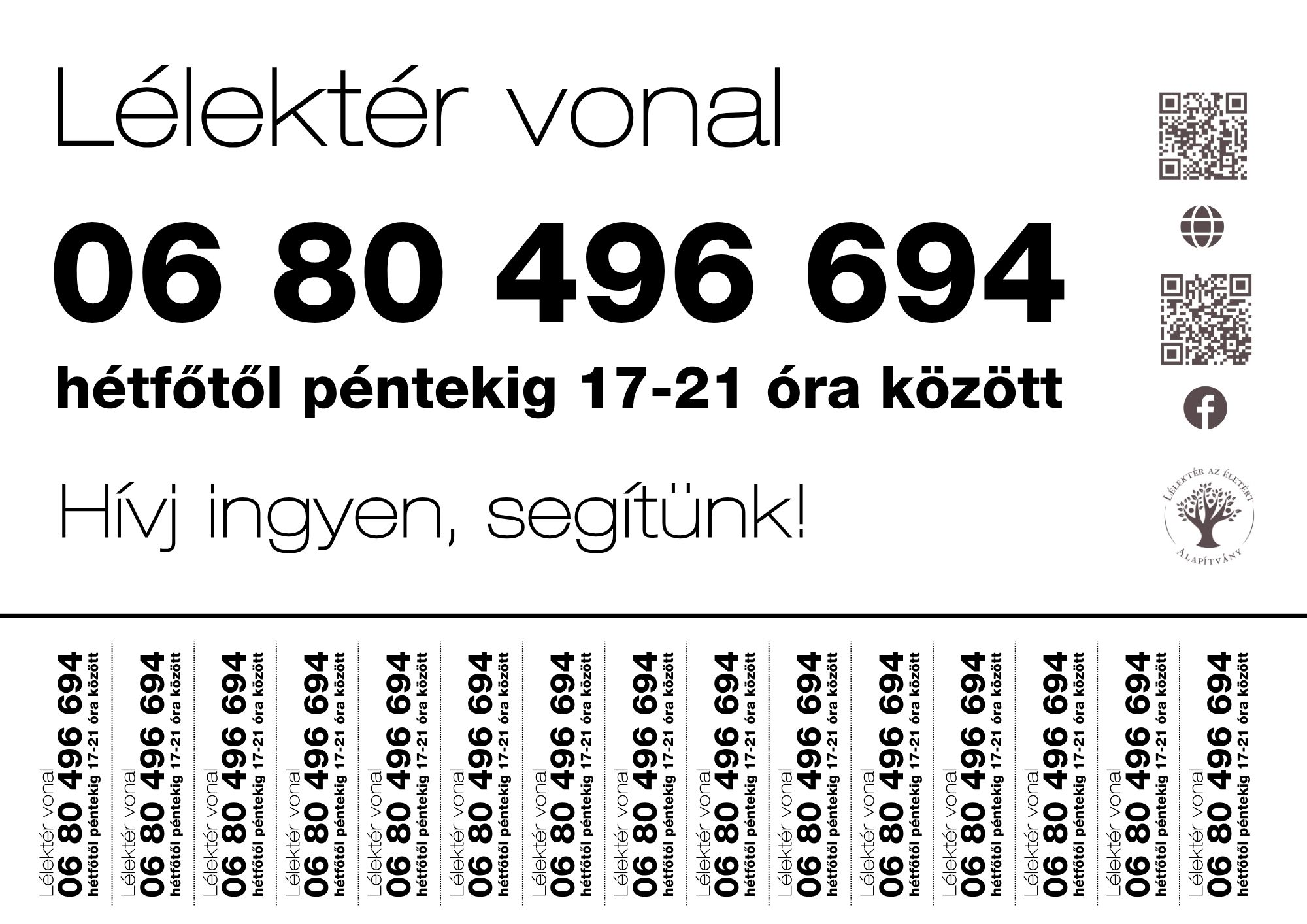 Szeretnénk, ha minél több emberhez eljutna a telefonszámunk – mert egyetlen hívás is megváltoztathatja vagy megmentheti egy ember életét. Ebben Te is segíthetsz.